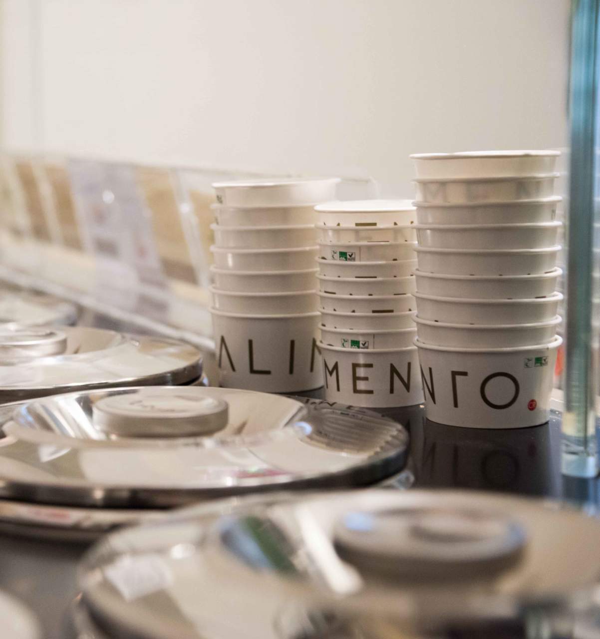 Atipico, si è detto, perché il core business di Alimento è incentrato su due prodotti che raramente convivono in uno stesso punto vendita: gelato artigianale e focaccia gourmet. Invece questa accoppiata rappresenta la quadratura del cerchio perché, come spiega Cesare: «Abbiamo pensato di abbinare focacce e gelato sia perché sono due prodotti italianissimi e riconosciuti come tali anche all’estero (è una nostra ambizione e progetto quello di guardare lontano), sia perché la prova dei fatti ha dimostrato che sono due prodotti complementari, che insieme “coprono” tutte le stagioni dell’anno, sopperendo ai consueti cali di vendita stagionali e garantendoci una continuità di lavoro. Cosa fondamentale per noi che amiamo fare ricerca su nuovi prodotti da inserire in linea. E la ricerca, si sa, richiede tempo e denaro, anche nel nostro piccolo».