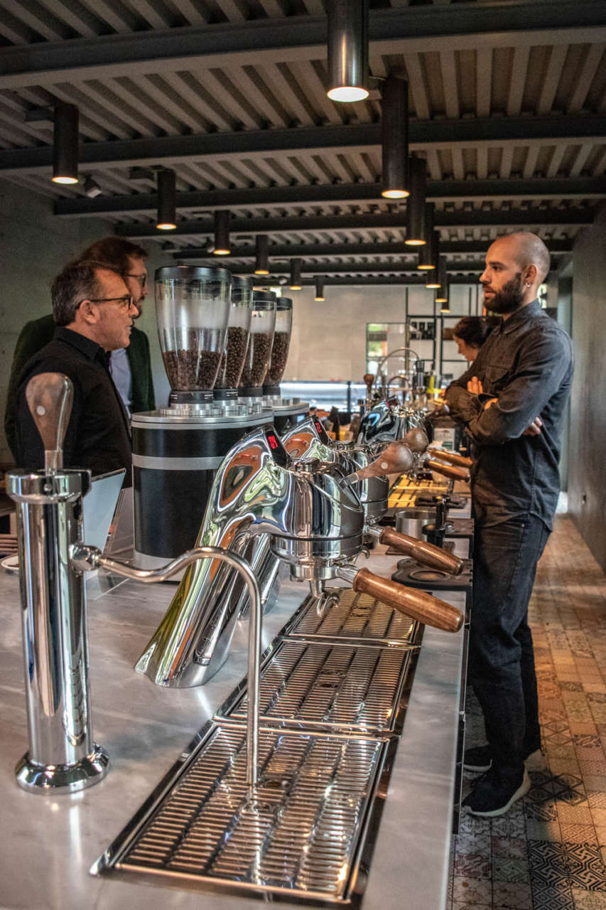 Nel 2011 ha preso il via la vendita di caffè espresso con l’ingresso dell’ultimo membro della famiglia, Paolo Bedussi, che racconta: «Il nostro locale era famoso per la gelateria e i dolci; per alcuni anni la vendita di caffè si è attestata sul chilo-chilo e mezzo al dì. Da parte mia ho sempre voluto sapere cosa offrivo e come servirlo al meglio e in questo mi ha aiutato la torrefazione Le Piantagioni del Caffè di Livorno attraverso il suo responsabile del controllo qualità Paolo Milani. Con lui ho imparato a conoscere il caffè ed estrarlo al meglio: quando il risultato in tazza non mi piace, regolo la macinatura e continuo finché sono soddisfatto. Poco alla volta i clienti hanno compreso la differenza tra il nostro caffè e quello di altri locali. Grazie anche al premio del Gambero Rosso, le vendite sono salite e oggi si attestano a 5-6 chili al giorno». Da ottobre la fisionomia di questo settore è cambiata: la macchina espresso ha lasciato il posto ai moduli del sistema Modbar. Il corpo macchina è sotto il banco, dal quale fuoriescono i “tap” (letteralmente “rubinetto”), ovvero i 4 bracci dedicati all’erogazione dell’espresso, 2 lance vapore e 1 modulo pour-over per la preparazione di caffè filtro. «Ho voluto queste macchine innovative perché desidero che la clientela viva la preparazione della bevanda richiesta e la cura che poniamo nel realizzarla - riprende Paolo -. Nessuno gira la schiena al cliente e non creano barriere: questo favorisce il dialogo e lo scambio di informazioni. Il design unico di queste macchine rappresenta appieno il nostro locale». Quando il cliente ordina un espresso (a 1,30 euro) gli vengono chieste le sue preferenze per proporre il caffè più indicato ai suoi gusti. A disposizione ci sono la miscela 100 (la più venduta) dal profilo armonico e cioccolatato, e il caffè di singola piantagione San Cayetano fresco e acidulo (certificati CSC - Caffè Speciali Certificati). Dal Nicaragua proviene il caffè della finca Buenos Aires, indicato per estrazioni a filtro e infine il decaffeinato ad acqua Decaf.