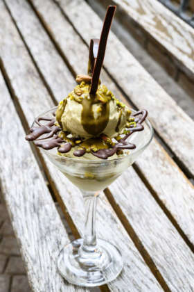 Gelato ma non solo. La gelateria-american bar L’Oasi di Badalasco (200 coperti) è nota per la produzione di gelati (32 gusti), sorbetti e granite alla siciliana (solo d’estate, 8 gusti), a cui si aggiunge quella dei gelati funzionali (ne abbiamo parlato anche qui) , che uniscono le doti di frutta, verdura e superfood (divisi per colori, proposti in coppe e coni, o usati per completare le insalatone). Qualche esempio? Il sorbetto con meringa, un superfood di origine indiana derivato da un arbusto, le cui foglie sono conosciute per le loro proprietà antiossidanti e anti infiammatorie, oltre a essere una importante fonte di fibre. o ancora il Sorbetto di pomodoro datteri e lampone: due frutti di colore rosso acceso che rivela la presenza di licopene e antociani antiossidanti, un abbinamento fonte di fibra, vitamina A e C. Dice Pelizzoli: «Mio marito si occupa della produzione del cioccolato, mentre il gelato e la pasticceria gelata sono compito mio. Ma la produzione comprende anche lievitati da colazione, una selezione di pasticceria mignon a complemento del gelato, biscotteria, fino al pane e alla focaccia. A Natale produciamo i panettoni, che abbiamo fatto anche in versione salata, dove al posto dei canditi usiamo verdure e olive disidratate». Una novità che sottolinea uno dei principi di Candida Pelizzoli: mente aperta e attenzione alle tendenze di mercato. «Sono convinta che i gelati funzionali saranno sempre più apprezzati. Credo sia anche arrivato il momento di stravolgere il modo di presentare il gelato artigianale, voglio creare qualcosa di più comodo e più semplice, adatto sia all’asporto che al servizio al tavolo. Ci sto lavorando».