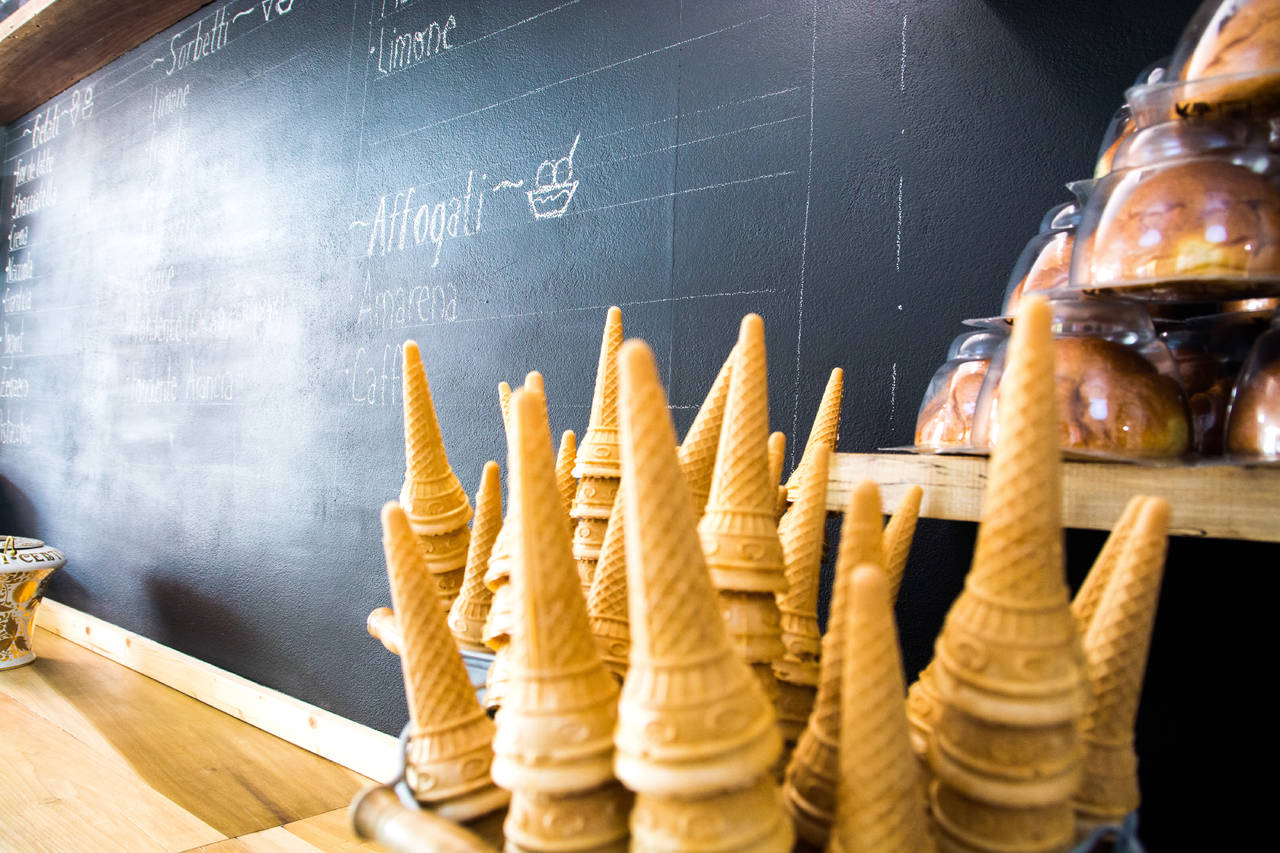 Per ora si parte con il minimo indispensabile: Marco Serra in laboratorio e la moglie Marina al banco. Arredi&Design di Buttigliera d'Asti ha curato l'arredo e il bancone da 6 metri e quaranta che accoglie i clienti e propone i 20 gusti. Al restauro, per i lavori di carpenteria, ha messo mano direttamente il gelatiere titolare: «I muratori e gli idraulici hanno fatto la parte strutturale, ovviamente, ma tutto il cartongesso, i legni, la decorazione e la pittura...lo abbiamo fatto noi, io e mia moglie. Mio zio era un ebanista e ho imparato da lui riparando i barconi in riva al Po. Mi piace restaurare mobili antichi, metterci le mani. Del resto è anche quello che serve per fare un buon gelato».