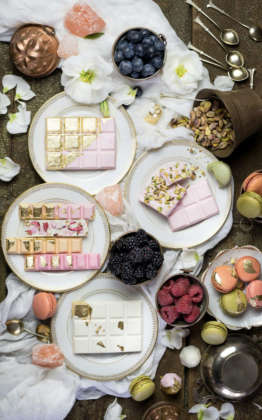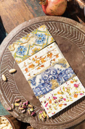 Quali sono i lavori più particolari che hai realizzato? Una linea di torte decorate con maioliche siciliane dipinte a mano su cioccolato, ideate per un matrimonio in Sicilia. Sulla tavola mancava un elemento che mantenesse una perfetta simmetria, così ho ideato delle tavolette dipinte a mano. A inizio anno ho anche presentato tre essenze ottenute con miscelazione di ingredienti di origine naturale, associate a tre dolci che ne rappresentano il carattere.