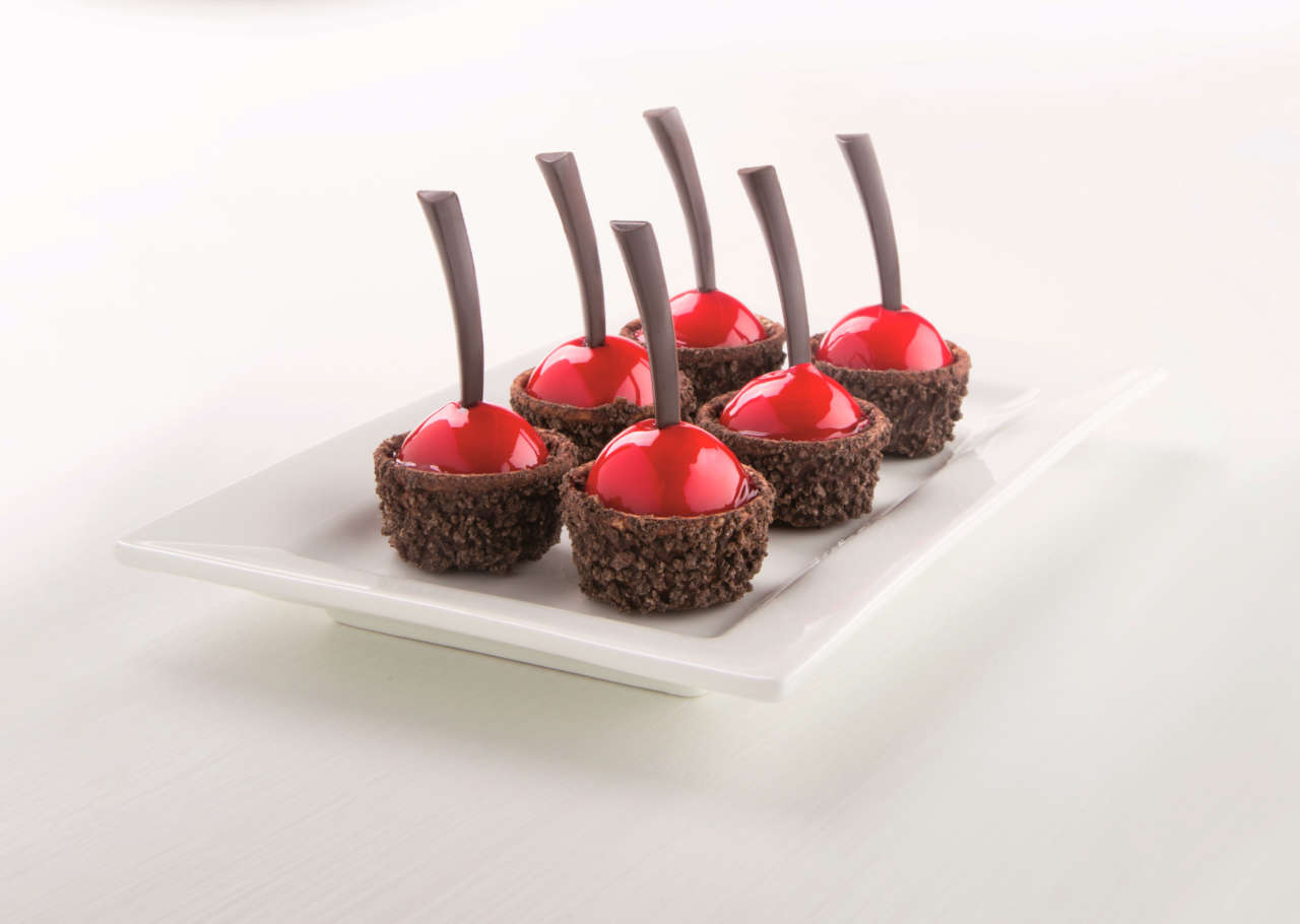 Un cuore di amarena ricoperto da un semifreddo al mascarpone e una lucida e invitante glassa all’amarena Fabbri 1905. Il “contenitore”, al cacao e con la consueta croccantezza, è una cialda LeCestine di Bussy. Nasce così la collaborazione tra due stori