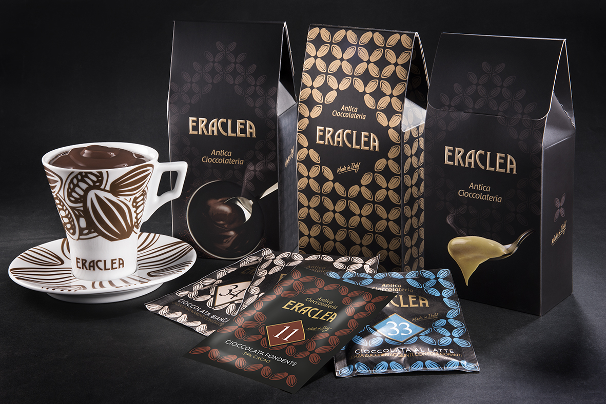 Le grafiche sono ispirate al cioccolato e il contenuto è personalizzabile: il cliente può acquistare a sua scelta le buste di cioccolata monodose della gamma Antica Cioccolateria Eraclea, per donarle o gustare a casa una cioccolata calda all'italiana. La linea Antica Cioccolateria è frutto di quasi 50 anni di lavoro di Eraclea con la cioccolata: dalla selezione di fave di cacao nasce una gamma di 24 gusti, nati dalla tradizione pasticcera italiana, che interpretano le tre anime della cioccolata: fondente, latte e bianca.