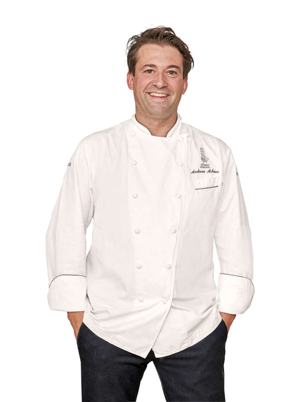 Alla base di tutto c’è una idea di pasticceria molto diversa da quella a cui il territorio era abituato fino a una decina di anni fa. «In Alto Adige trionfano dolci tradizionali e fette di torta enormi, io punto su una pasticceria raffinata, con pezzature di minima dimensione, con molta attenzione all’estetica. Da quando abbiamo aperto, vediamo tantissime altre pasticcerie che si stanno spostando su decori ed estetica, precisione e pulizia. Questo dà una mano a tutti a vendere meglio, perché è più difficile se sei da solo». Tra i dolci più rappresentativi dell’offerta di Acherer - oltre a bicchierini e cioccolatini - ci sono torte moderne come Esile fusione (torta al pistacchio con frutto della passione) o monoporzioni come Picasso (alle mandorle, con mousse alla pesca con cuore al fior di sambuco, bordo in cioccolato con spruzzi di colore e frutta fresca). O Tango, una mousse al cioccolato con pralinato di nocciole e sbriciolato di wafer, con base brownie e glassa al cioccolato e caramello. La torta simbolo è senza nome, è una mousse preparata col cioccolato âme sœur (anima gemella), sviluppato direttamente da Acherer assieme a Cacao Barry. È decorata con lamponi ed elementi sempre in cioccolato. «Utilizzo 8 tonnellate all’anno di questa miscela prodotta solo per me, per alcuni dolci, cioccolatini e tavolette. Distinguersi è fondamentale, così ho voluto creare un mio gusto personalizzato».