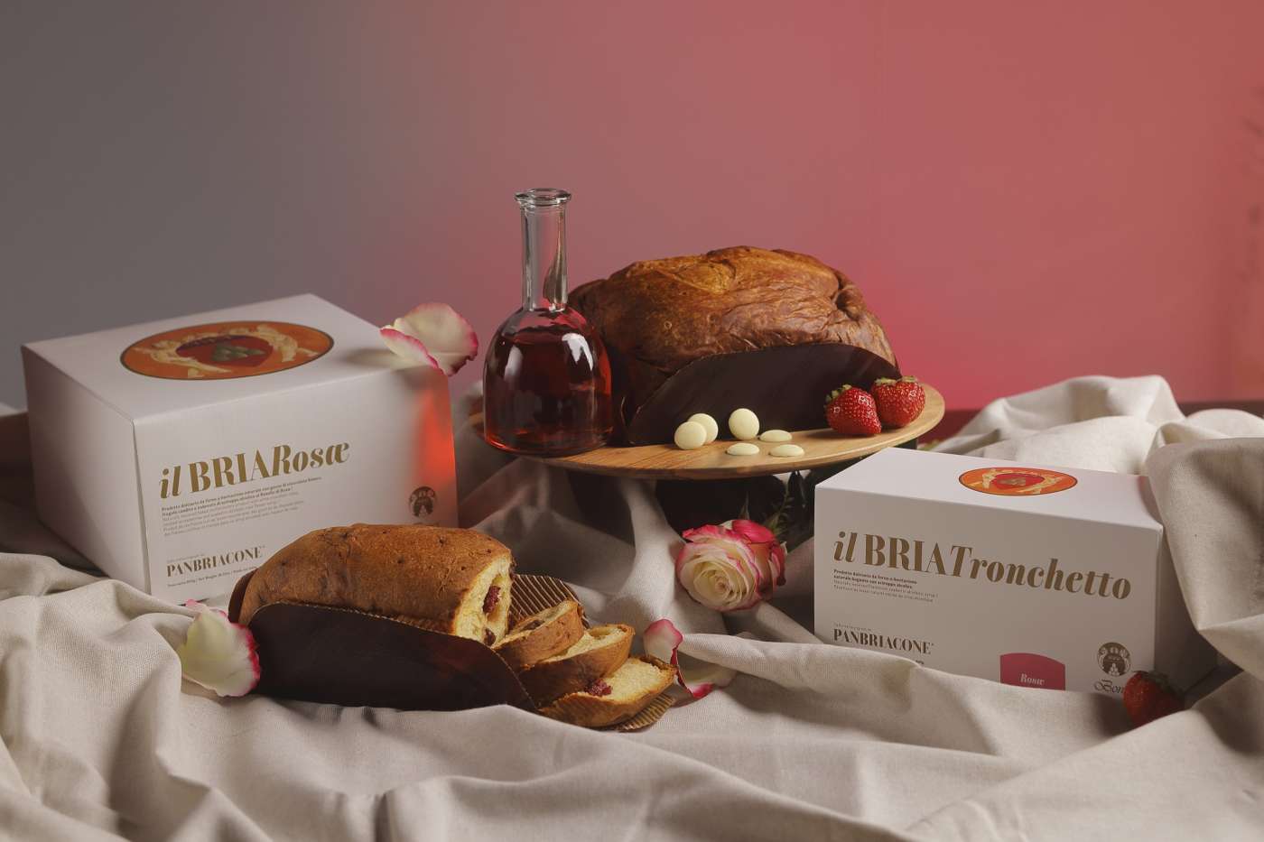 Il dolce è nato dall’originale ricetta del Panbriacone, il panettone rivisitato dalla storica insegna toscana, e si chiama BriaRosae. È un prodotto tutto rosa, raffinato, dal soffice impasto a lievitazione naturale, con gocce di cioccolato bianco, fragole candite e bagna di rosolio di rose.