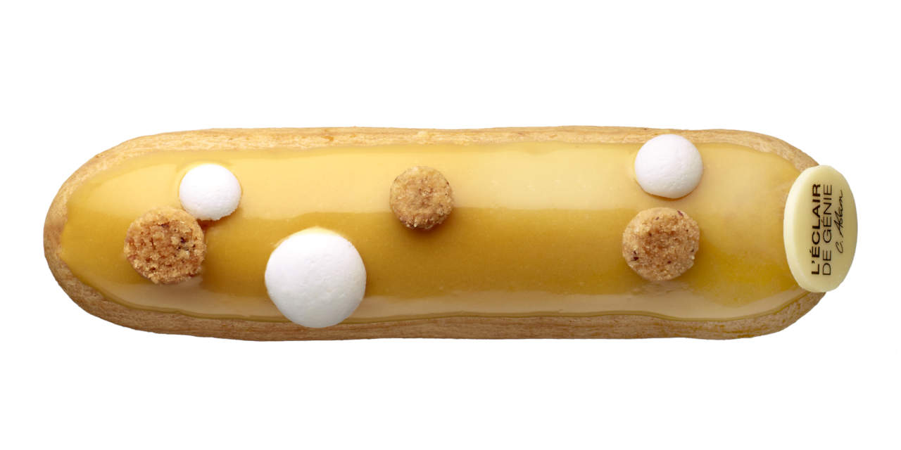 Gli éclair di Adam si distinguono per la decorazione perfetta e per i gusti originali. Dal 2012 a oggi L’Éclair de Génie ne ha creati 400, sfornandone di nuovi stagione dopo stagione, proprio come una casa di moda.