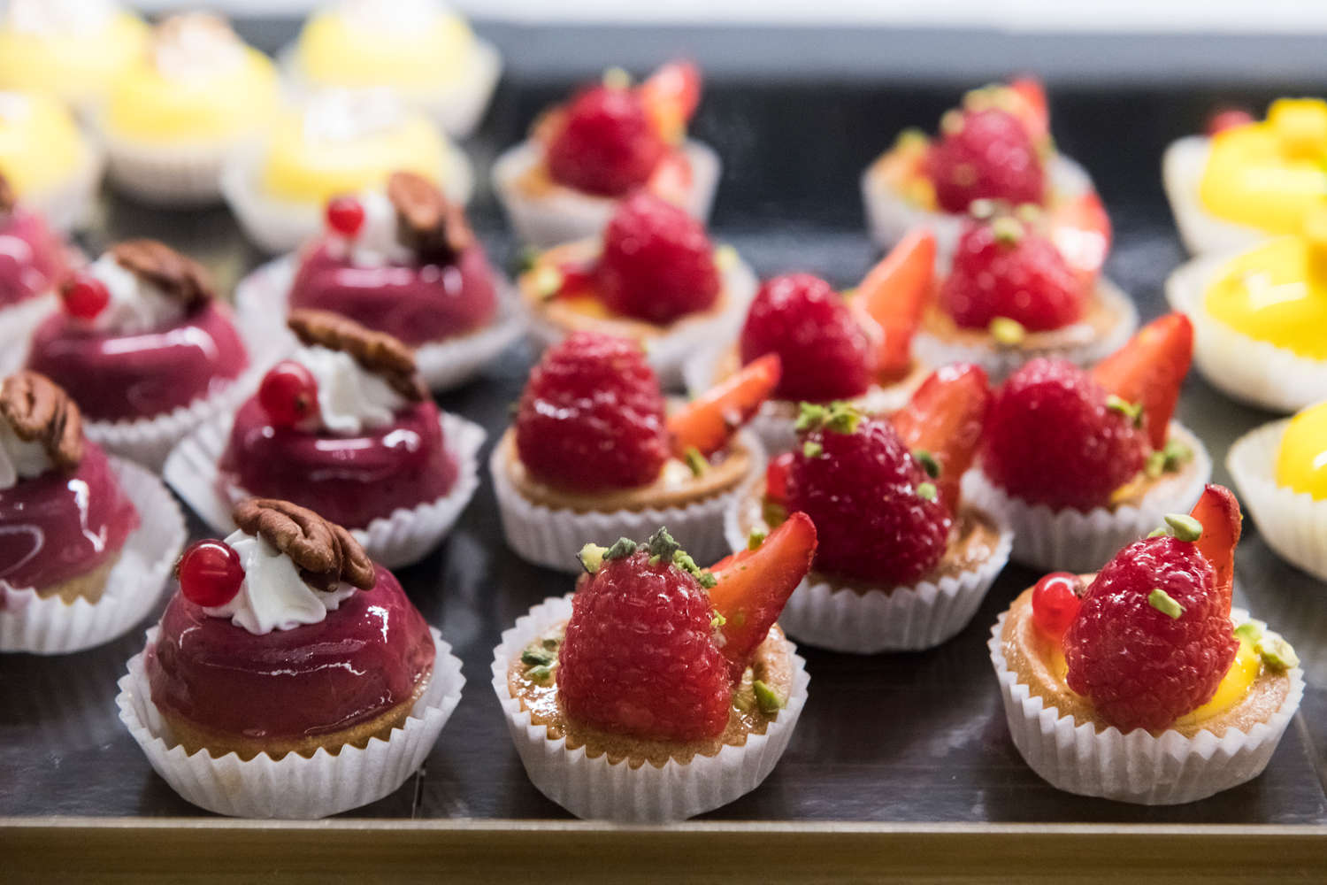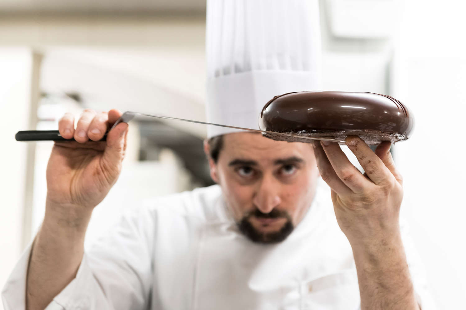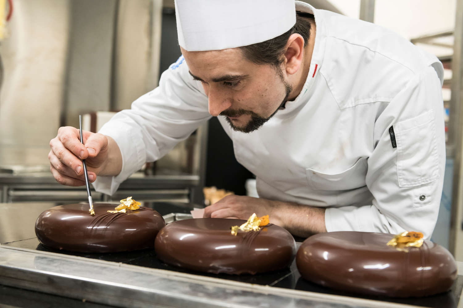 C’è un piano segreto nel nuovo ristorante di Carlo Cracco a Milano. Non affaccia sugli stucchi ripuliti e splendenti della Galleria Vittorio Emanuele II e non è accessibile al pubblico. Per raggiungerlo occorre passare dal retro e salire dalle scale di servizio. Le abbiamo percorse, curiosi di vedere come è organizzato il laboratorio di pasticceria collocato al mezzanino della monumentale creatura di Cracco, il ristorante di cui parlano tutti, aperto da poche settimane. Ci sono voluti anni di “gestazione” per questo progetto: per trovare una location alternativa al ristorante di via Victor Hugo che convincesse lo chef, per aggiudicarsi il bando del Comune per l’affitto dello spazio in Galleria (1.090.000 euro l’anno di canone) e per ristrutturare i cinque piani per complessivi 1.118 mq. C’è il ristorante gourmet, da 45 coperti, il cafè-bistrot al piano terra, la cantina nel seminterrato con 2.000 etichette e il secondo piano con il salone dedicato agli eventi speciali. Eppure, è il laboratorio di pasticceria al mezzanino a rappresentare la vera novità dell’offerta dello chef e del suo team. «Eravamo abituati a gestire un ristorante - ci spiega Carlo Cracco - adesso dobbiamo imparare a manovrare una complessità ben diversa, una produzione di altissima qualità che deve servire tutte le esigenze. Parliamo di un impegno grande perché la pasticceria funziona con un orologio suo e non è mai ferma. Si parte dalle colazioni al bar-caffetteria, poi il bistrot a pranzo, il piccolo banco pasticceria del piano terra, sia per il consumo interno di monoporzioni, torte e cioccolateria, che per l’asporto. Poi l’ora del tè con mignon e biscotti, l’aperitivo con l’offerta salata, la cena e il dopocena. Stiamo prendendo le misure e in questo primo periodo facciamo tutto con estrema calma. Non abbiamo ancora le forze per numeri più importanti e anche quando allargheremo la squadra dovremo dedicare del tempo alla formazione. Non ci corre dietro nessuno, non si può avere fretta quando si vuole produrre tutto internamente e al massimo della qualità». Cracco parla della sua creatura come del progetto della maturità, con un tono che è un misto di fermezza e felicità assoluta. In questo posto ha messo tutto se stesso. «Nella mia visione la pasticceria non deve essere considerata “altro” rispetto alla cucina, anzi l’opposto: deve concettualmente dialogare con la cucina stessa e con la sua impostazione. Ma è chiaro che una produzione così debba essere svolta su un binario parallelo rispetto a quella dei dessert per il ristorante». Ed ecco le due anime della pasticceria made in Cracco: nella cucina del ristorante gourmet è affidata a Luca Sacchi, sous chef di Carlo e sfidato collaboratore da 11 anni; il laboratorio invece è il regno di Marco Pedron, vulcanico ex collaboratore di Luigi Biasetto. Affiancato da Ilaria e Carlotta, che lui chiama “i miei angeli”, ci accoglie con entusiasmo.