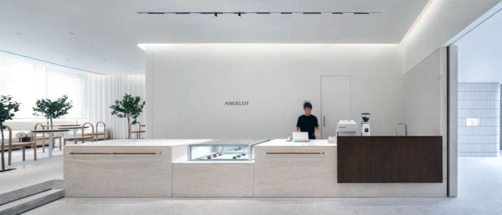 HANGZHOU (Cina). Nessuna ampia vetrina, nessun colore che spicca e attira lo sguardo, nessun logo se non un semplice nome. Difficile immaginare che questo locale, incastonato nella facciata del moderno edificio che lo ospita come all’interno di una cornice, sia una pasticceria. Un negozio di gioielli, magari, oppure una galleria d’arte. Eppure, guardandola dall’esterno, l’Angelot lascia intravedere una piccola teca dove, al posto di oro o dipinti, espone un pasticcino. Un capolavoro di pasticcino. Ad Hangzhou, nella Cina delle architetture più esuberanti ed eccessive, questa pasticceria spicca proprio per il suo essere lontano dagli schemi: è sobria, elegante e forse per questo, incredibilmente glamour. Difficile non lasciarsi sedurre dal richiamo di quelle piccole teche che sembrano uno scrigno. Già dall’esterno tutto sembra frutto di una ricercata scelta stilistica: l’ingresso effetto luxury box, le sue dimensioni compatte rispetto al fronte arretrato, l’elegante rivestimento a piastrelline che richiama la macro squadratura della facciata. Chi mai potrebbe immaginare che questa facciata tanto definita sia in realtà frutto di un semplice stratagemma per far fronte a un ordinario ma alquanto scomodo problema tecnico?