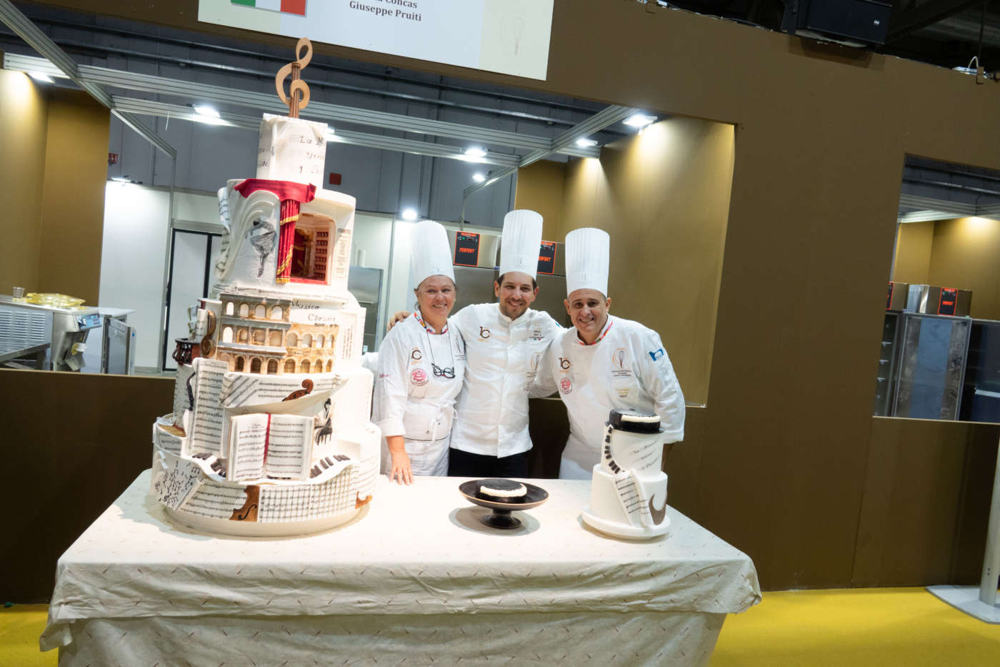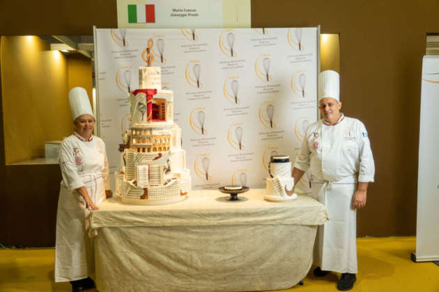 Ad eseguire la maestosa opera è stata Maria Concas, pluripremiata cake designer. Ha lavorato con Giuseppe Pruiti, affermato pasticcere. Con loro, anche il coach per la torta da degustazione Fabio Orlando, già campione di Cake Design nel 2016, che ha formato il team italiano impegnato nell’importante mondiale, aggiudicandosi l’argento (prima la Polonia, terzo il Belgio).