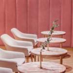 Ad ispirare i giovani architetti polacchi la specialità proposta all’interno della pasticceria, i noti “eclair” lunghi e sottili dolci di pasta choux riempiti e glassati. I riferimenti al noto pasticcino francese sono ovunque, dal disegno delle lampade agli specchi, dalle maniglie delle porte agli appendiabiti sino al grande bancone ovale a isola dove sono esposti in vetrina, come fossero veri gioielli, i prelibati dolcetti. Due sono gli ambienti adibiti al pubblico, delimitati da 3 grandi archi che separano la zona del bancone da quella dedicata alla degustazione, arredata con raffinata essenzialità con eleganti poltroncine e tavolini rotondi. Scenograficamente il colore scelto per gli interni è il rosa, nella tonalità “millennial pink”: grandi pannelli in morbido velluto per rivestire le pareti e una tonalità più chiara per la tinteggiatura dei soffitti, alternati al bianco delle sedute, all’ottone e al marmo dei tavolini e al legno del bancone e della pavimentazione.