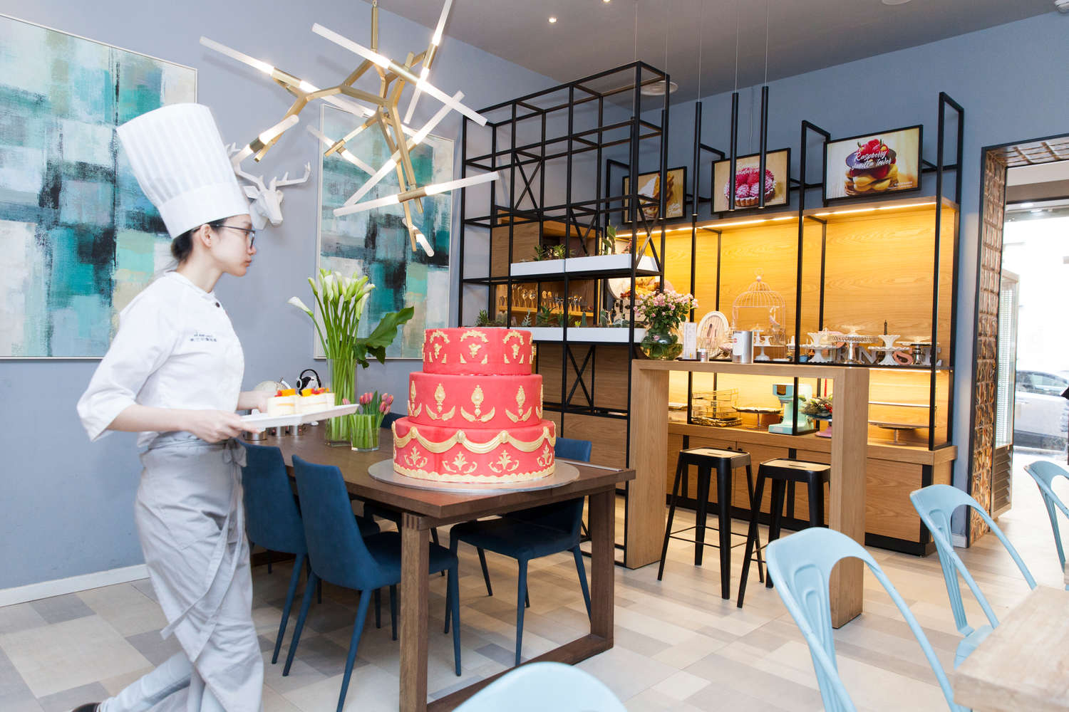 In realtà la pasticceria cinese contemporanea, quella che possiamo trovare nei food districts di Hong Kong e Shanghai per intenderci, è stata ispirata da due distinte scuole internazionali, quella francese appunto e quella americana. La prima si è espressa soprattutto a Hong Kong nel settore delle wedding cakes, le torte nuziali sempre più di moda tra le coppie di giovani sposi, che usano festeggiare abbinando alla cerimonia tradizionale un wedding party d’ispirazione occidentale, con tanto di abito bianco (o rosso). La wedding cake cinese predilige i rivestimenti di pasta di zucchero, spesso di colore rosso, con decorazioni e ideogrammi augurali color oro, per chi intende mantenere un legame con la tradizione. Per tutti gli altri prevalgono le classiche torte multipiano, anche in versione multistrato e dall’interno multicolore, ma rigorosamente rivestite di panna bianca. L’ispirazione americana la troviamo invece nelle torte augurali di compleanno. Qui l’ironia e la ricerca dell’effetto wow la fanno da padrone. Le forme bizzare possono ispirarsi a una passione del festeggiato, come la fotografia o i fumetti, e si tenta di sorprendere con ampio ricorso ai colori vivaci, alla stampa su pasta di zucchero, mentre nelle pasticcerie più esclusive di Cina il 3D cake design rappresenta un futuro che è già presente. L’approccio francese ha ispirato maggiormente la scuola di Shanghai, anche se ormai si trovano entrambe le scuole in tutta la Greater China, da Macau a Taiwan. Così i pasticceri cinesi di Paolo Sarpi a Milano hanno come background entrambe le scuole, oltre a districarsi con disinvoltura nei grandi classici, dai macarons agli éclair, dal cheese cake alla Sacher; ma ciò che fa la differenza è l’apporto cinese inconfondibile, sia dal punto di vista estetico sia nell’uso di elementi simbolici dalla tradizione millenaria. I pasticceri incontrati prediligono l’uso d'ingredienti asiatici, come la frutta esotica (mango, litchi, passion fruit) e prodotti come tè verde, matcha, agar agar, azuki, semi di loto, e amano le consistenze gelatinose e le mousse.