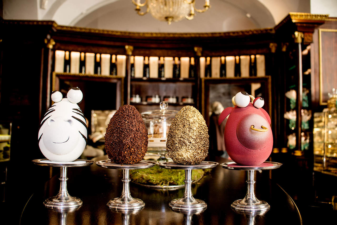 Inoltre il pasticciere Fabrizio Galla, che affianca lo chef Matteo Baronetto nel ristorante Del Cambio di Torino e nella Farmacia Del Cambio, pasticceria annessa al ristorante stellato, ha ideato delle uova ricoperte di praline dorate o sommerse da una colata di granella di nocciole caramellate.