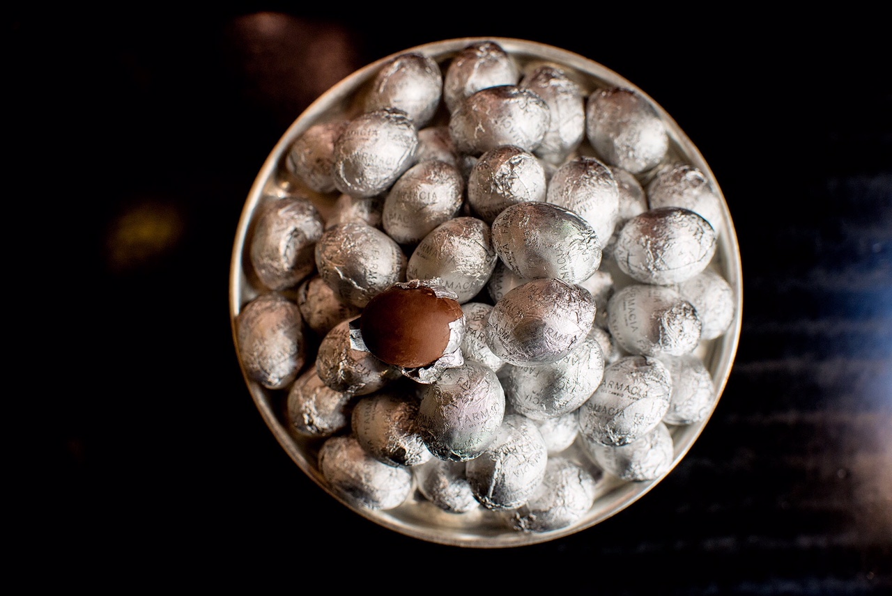 Per il primo anno, la Farmacia Del Cambio ha creato anche ovetti di cioccolato Gianduia, fatti con Nocciole Piemonte Igp, di consistenza cremosa e sapore intenso.