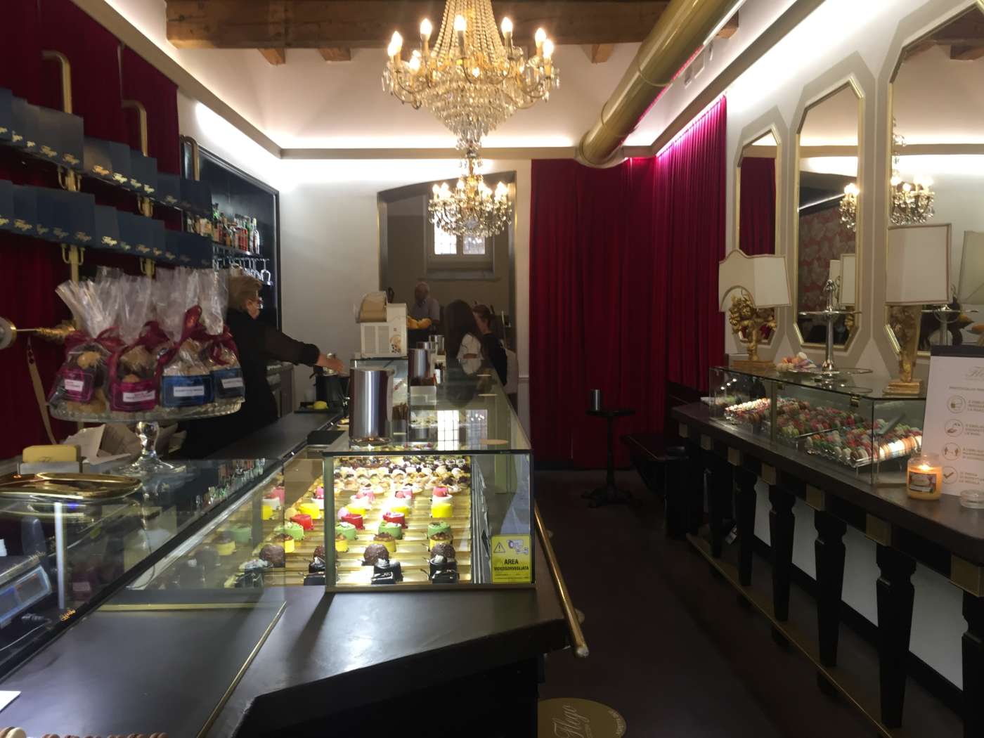 Raffinata ed elegante, la vetrina di Flego in via Borsari racconta di un'insegna storica che sa stare al passo con i tempi. I turisti si fermano ad ammirare e fotografare le monumentali torte nuziali in esposizione, ma anche le golose torte classiche e moderne, tra cui la tipica Torta Russa. È mattina, quindi in vetrina ci sono anche brioche e risini. Quando ripassiamo nel tardo pomeriggio le brioche sono state sostituite da file di colorati macaron. All'interno dei locale si intravvede un banco molto ben fornito, costellato di variopinte delizie. Entriamo: mignon, monoporzioni e torte moderne di perfezione tecnica e artistica fanno bella mostra di sé nel banco e nella frigovetrina. Chiediamo alla cortese signora dietro il banco di consigliarci la specialità della casa. Ci suggerisce lo zaletto di Verona, morbidissimo, semplicissimo e casalingo, preparato come lo facevano le nonne, racconta la signora, con i pochi ingredienti disponibili un tempo: farina di mais per la polenta, latte, uvette. Qui viene servito tiepido con una spolverata di zucchero a velo (€3 con un caffè). Una delizia. Pasticceria Flego, Corso Porta Borsari 9 - Verona