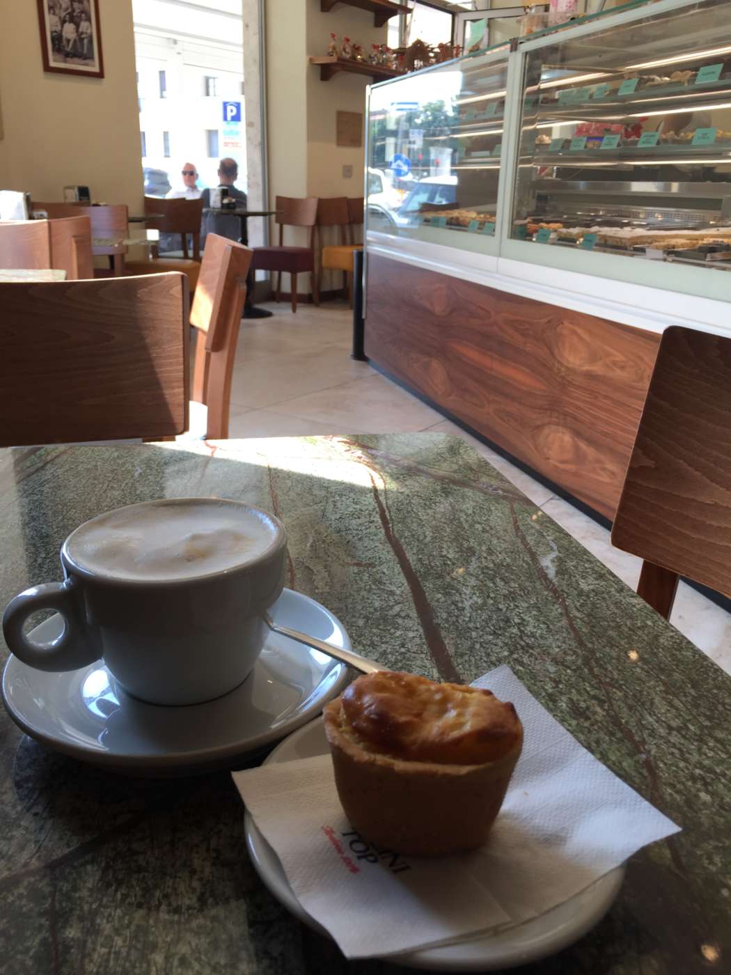L'impressione che si ha stando seduti qualche decina di minuti ai tavoli della luminosa pasticceria Perlini è quella di trovarsi nel tipico caffè quartiere, dove i clienti sono per lo più abituali e dove il personale conosce di persona tutti gli avventori e li saluta con due chiacchiere. Il centro storico si trova a poche decine di metri, dall'altra parte del ponte che attraversa l'Adige. Il locale è ampio, il decor caldo e accogliente, i banchi disposti a L permettono al personale di tenere sott'occhio tutti i tavolini sia all'interno che nel dehors e il servizio è cordiale ed efficiente. Molto classico l'assortimento che occhieggiamo nel banco della pasticceria: bigné di vari tipi, funghetti, cannoncini, boeri, florentine, diplomatici, un paio di monoporzioni (Sacher), biscotti vari (brutti ma buoni, spumiglie, esse di frolla), la Torta Russa. Sul bancone della caffetteria una buona selezione di croissanterie e di dolci locali come risini e zaletti, più qualche pizzetta e brioche salata. Pasticceria Perlini, Piazzale Cadorna 7 - Verona