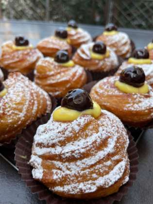 Danilo Frisone, cuoco con un’esperienza di venticinque anni in cucina che si è felicemente riscoperto fornaio a quarant’anni, in soli tre anni è divenuto un riferimento per gli amanti della buona cucina e per tutti gli appassionati di pane, dolci e lievitati. Da Cresci, in via Alcide de Gasperi 11/17, a Roma, l'ampia offerta si completa con la Zeppola di San Giuseppe con crema pasticcera e amarena, simbolo di questa giornata.