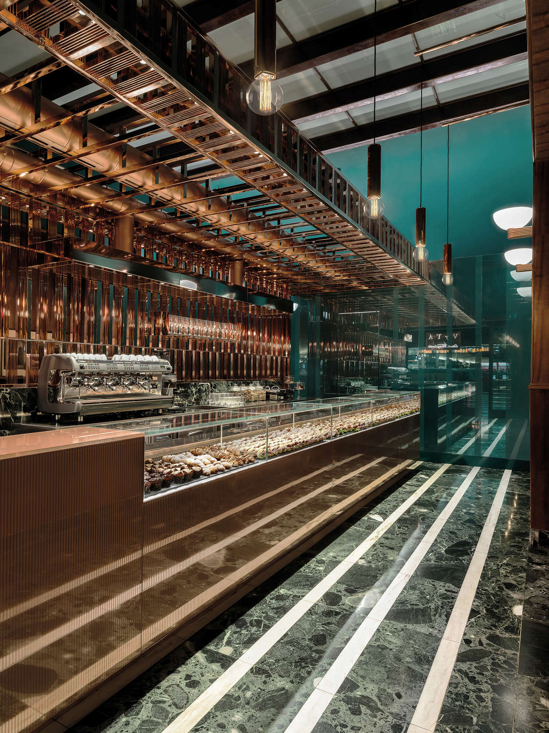 Non solo una caffetteria, più di una pasticceria e oltre un bar. Vyta, vincitore ai Restaurant e Bar Design Awards 2017 nella categoria "Café" è difficile descrivere, se non utilizzando termini dal concetto più vasto, come caffè gourmet o luxury bakery, ma anche così la definizione starebbe stretta. E non solo perché il Vyta accoglie in un unico spazio più di una tipologia di servizio, ma perché con la sua ubicazione è diventato qualcosa che va oltre il locale dove bere un caffè e mangiare qualcosa. È un portale d’accesso alla città, e lo fa con tutta l’eccellenza che una realtà storica come Firenze rappresenta. È progettato, infatti, all’interno della stazione di Santa Maria Novella, il principale scalo ferroviario toscano, e fa parte di una catena già presente in altre sei grandi stazioni italiane: Roma, Milano, Torino, Venezia, Bologna e Napoli. Il nome completo è Vyta Santa Margherita, che si rifà al gruppo azionista cui fa capo Nicolò Marzotto.